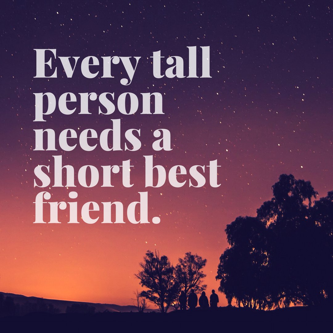 Tall Friend Short Friend Quotes Every Tall Girl Needs A Short Friend Funny Friendship Quotes : From record-breaking plants and incredible animal news to space superlatives and the awesome power of Taylor Swift fans, hereโs the long list of things we learned in 2023. . As a non-Costco member, you aren’t allowed to buy a Shop Card yourself. Rather, a member has to purchase one for you. And it’s a pretty tall order to ask a friend or family member to buy you a Shop .